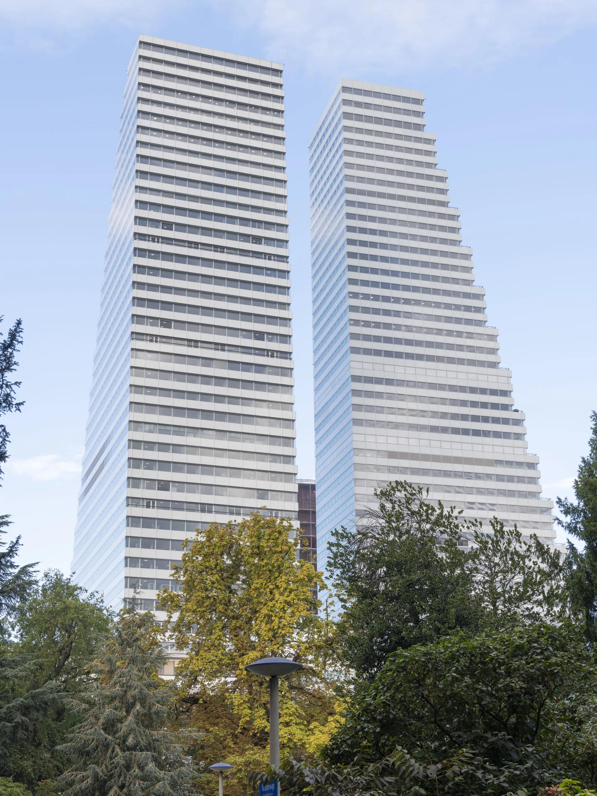 Am Stammsitz Basel baut der Pharmakonzern F. Hoffmann-La Roche AG mit seinem neuen Bürohochhaus das derzeit höchste Gebäude der Schweiz. Als Zwillingsturm neben dem bestehenden Bau 1 bietet der schlanke Bau 2 mit seinen 205 Metern Höhe Raum für ungefähr 3.500 Mitarbeitende und wird voraussichtlich Mitte 2022 eröffnet werden. Der Entwurf des Architekturbüros Herzog & de Meuron wurde mit dem Generalplanungsunternehmen Drees & Sommer in abgestufter Bauweise als nachhaltiges und energieeffizientes Gebäude konzipiert, das neben mehreren Aussenterrassen auch ein Café und ein Bistro beherbergt. Als zentraler Blickfang prägen die Stahlwendeltreppen und Ganzglasgeländer die stilvolle Innenarchitektur des Büroturms. Für sämtliche Konstruktionen wurden ausschliesslich nachhaltige Baustoffe und Verarbeitungsweisen eingesetzt.