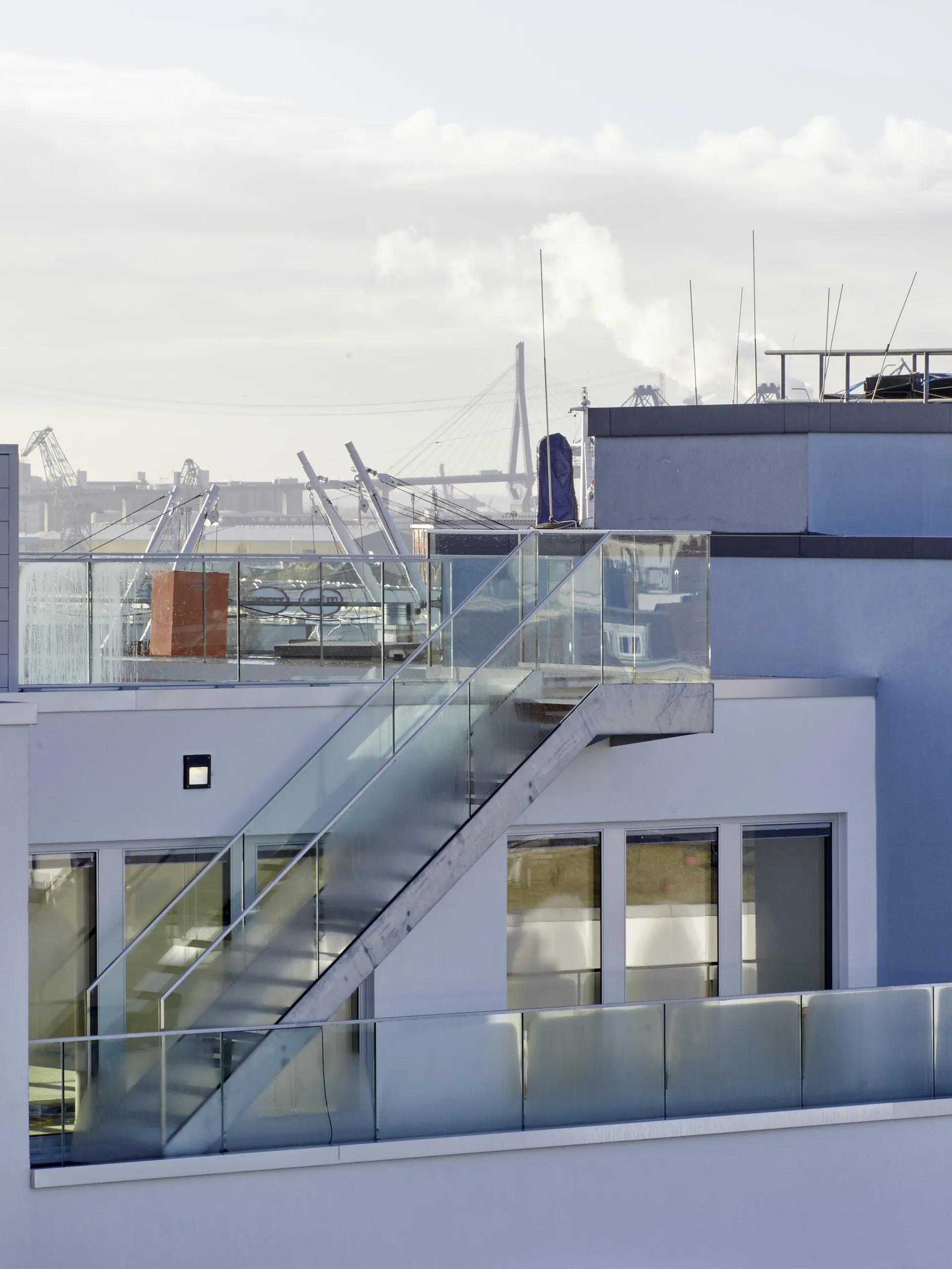 Wie dieses Praxisbeispiel zeigt, sind Ganzglasgeländer momentan absolut im Trend, da sie eine maximal mögliche Transparenz bieten. Bei BOA Vista handelt es sich um einen imposanten und repräsentativen Büro- und Wohnkomplex in Hamburg, der im Portugiesenviertel der Stadt liegt. BOA Vista bedeutet auf portugiesisch so viel wie „schöne Aussicht" – also ein passender Name für ein Gebäude, von dem aus man einen fantastischen Blick über Hafen, Michel und Elbe geniessen kann.