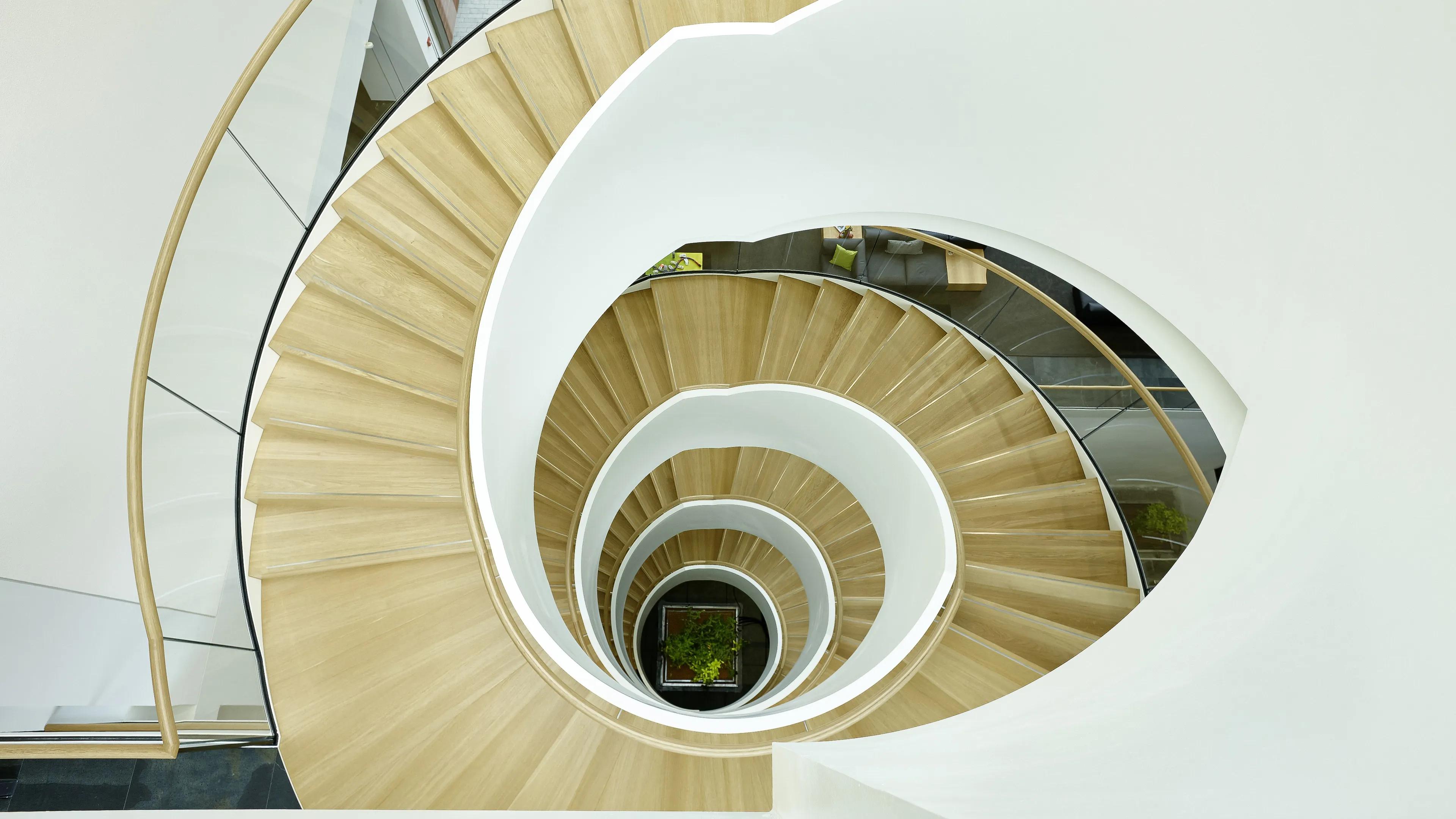 - zweiläufig, gleichmässig gerundete Wendeltreppe